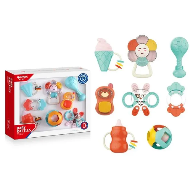 Huanger Baby Rattles Teether Set 8pcs Non Toxic-BPA Free 0m+